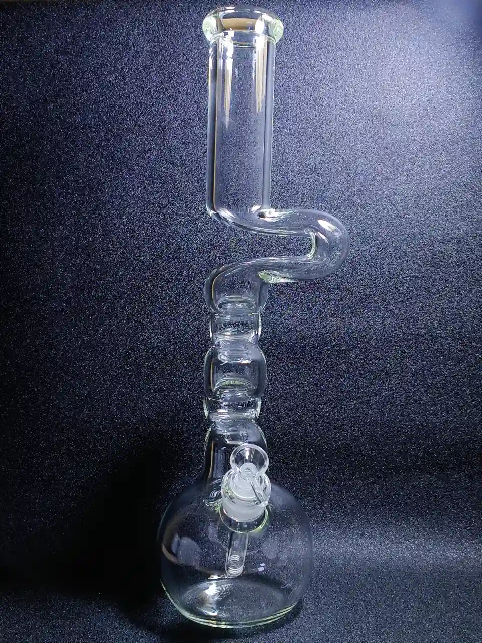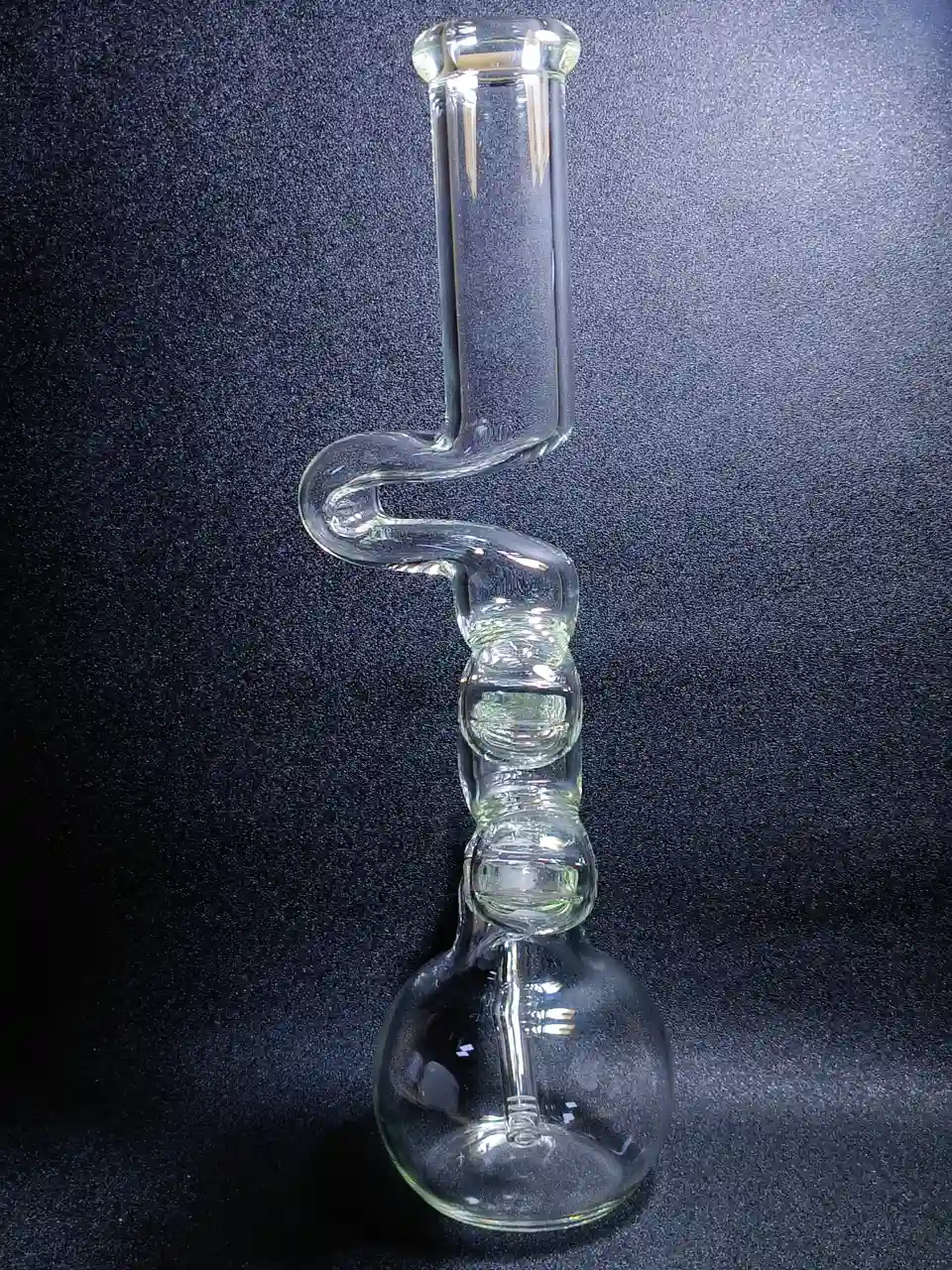 This 18-inch bubble base glass Zong bong is designed for both style and performance. Crafted from 7mm thick borosilicate glass, it’s strong, durable, and ready for everyday use.