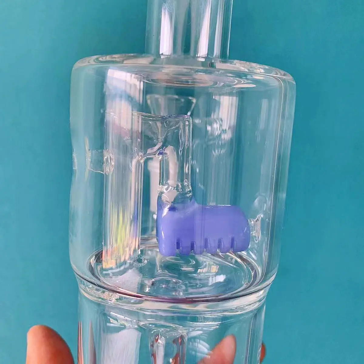 With its clear glass body accented by milky blue tones, this piece looks as good as it performs. The dual-chamber design lets you watch the smoke swirl through each stage of filtration, turning every session into a visual treat.