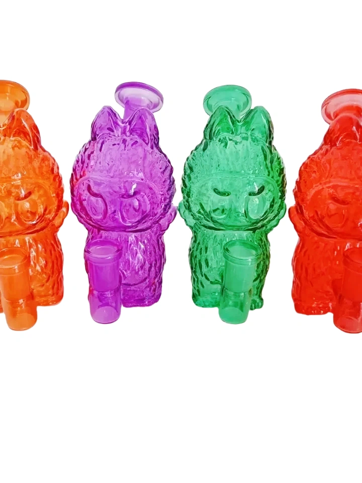 This adorable, little Labubu-shaped glass water pipe is perfect for enjoying both dry herbs and concentrates. The bright, jewel-toned design is not only super cute but also incredibly versatile.